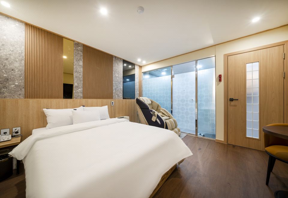 | 서산 허앤장 한옥호텔 호수공원점 | – 깔끔한 한옥 스타일 & 최신식 에어샤워 설치 – 전객실 비데, 공기청정기, 일부 스타일러 구비 – 프리미엄 마사지 의자 & 시네마 룸 보유 | 할인 예약하기 |